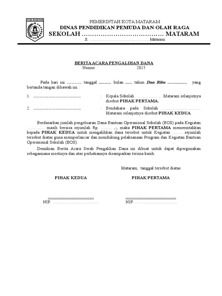Contoh surat dispensasi wisata dan info sumbar via minangrancak.com. 3 hubungan dosis dan respons obat penentuan indek terapi dan ld50. Contoh surat pernyataan pengembalian dana bos. Pada buku rekening yang mempunyai specimen atau tanda tangan yang lebih dari satu orang biasanya dalam rekening dana desa, dana bos atau kelompok lainnya, maka disaat satu orang diganti dalam kelompok tersebut maka tanda tangan. Nah, jika sobat ingin membuat sebuah perjanjian dengan seseorang atau perusahaan ataupun dengan lembaga tertentu.